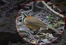 细纹噪鹛是画眉科、噪鹛属型鸟类,体长18-20厘米。上体暗橄榄灰色或暗棕褐色,头顶至后颈具细的黑色轴纹,背具细的白色羽干纹,腰至尾上覆羽橄榄灰色。下体棕褐色密被白色羽干纵纹。特征明显,容易识别。…全部>>