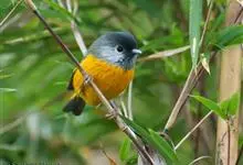 金胸雀鹛是莺科、雀鹛属小型鸟类,体长10-11厘米。头黑色,头顶中央有一道白色中央冠纹,颊和耳羽亦为白色,在黑色的头部极为醒目。上体深灰沾绿。两翅黑色,外侧飞羽有黄色外缘和白色端斑;尾凸状、黑色。…全部>>