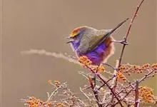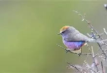 花彩雀莺:体长9-12厘米,是一种毛茸茸偏紫色的雀莺。顶冠棕色,眉纹白。尾长,羽毛松软。前额有一宽阔的眉纹淡黄色,头顶栗色或棕红色,有的具紫蓝色光泽。背灰色,腰和尾上覆羽辉紫蓝色,飞羽灰褐色。…全部>>