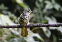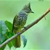 纵纹绿鹎,是鹎科鹎属的一种动物,是体型中等大小鸟类,体长20-24厘米。头绿褐色具明显的冠羽,其上具细的白色纵纹。上体橄榄绿色具细的白色纵纹。眼圈浅黄色。喉和尾和覆羽黄色,其余下体暗灰黑色具黄白色纵纹。…全部>>