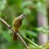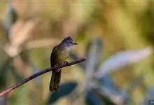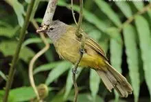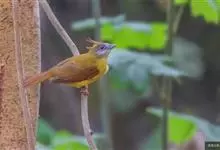 黄绿鹎,小型鸟类,体长19-22厘米。额至头顶暗褐具灰色羽缘,眼先黑色,其上面有一粗著的白纹从鼻后至眼,在黑色的头部极为醒目。上体橄榄绿褐色。颏、喉淡灰色或灰白色,胸灰褐色具橄榄黄色羽缘,…全部>>