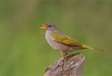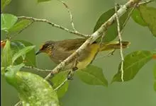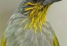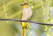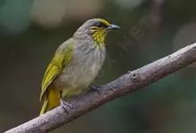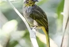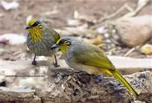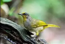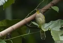 纹喉鹎:体长19厘米,是一种中等体型的偏绿色鹎。特征为头顶、脸颊、颏及喉均具黄色条纹。上体橄榄绿色。胸腹暗灰色,肛周和尾下覆羽艳黄。不可能与任何其他鹎类混淆。虹膜褐色;嘴黑色;脚粉褐色。…全部>>
