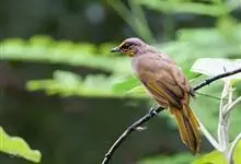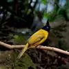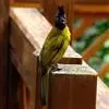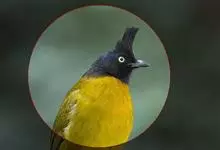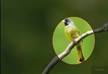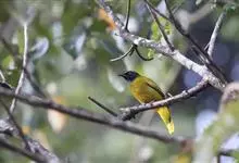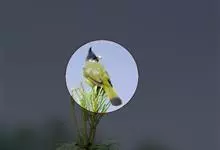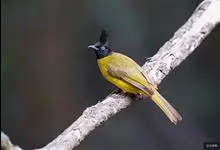 黑冠黄鹎:体长18-21厘米,是一种中等体型偏黄色鹎。整个头、颈、颏、喉黑色,头顶有显著直立的羽冠,黑色,上体褐橄榄黄绿色,下体橄榄黄色。虹膜偏红;嘴及脚黑色。…全部>>