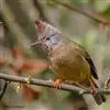 纹喉凤鹛:小型鸟类,体长13-16厘米。头顶和羽冠暗褐色或褐灰色,上体橄榄褐色,飞羽黑褐色,外侧次级飞羽表面橙黄色,构成一块纵形翼斑,极为醒目。颏、喉淡棕白色,具黑色纵纹,腹和尾下覆羽橙黄色。…全部>>