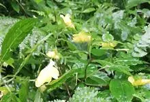 水金凤:是凤仙花科,凤仙花属一年生草本植物,高可达70厘米。茎肉质,直立,叶互生;叶片卵形或卵状椭圆形,边缘有粗圆齿状齿,上面深绿色,下面灰绿色;叶柄纤细,总状花序;苞片草质,披针形,花黄色;侧生萼…全部>>