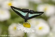 青带凤蝶Graphium sarpedon ,又名青凤蝶,是最普遍的中型凤蝶,飞行速度很快。青带凤蝶的翅膀中央有许多浅蓝色的斑点,很整齐地排列成一条直线。这些斑点由上而下逐渐变大,就像一条青色的带子。全部>>
