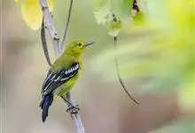 黑翅雀鹎:体重14-19克,体长11.5-16厘米。是树栖性绿色小鸟,外形与叶鹎相似,下体黄色。鸟喙直,翼长而尖,总体羽毛是绿色和黄色相结合,翼上具两道明显近白色横纹,翼近黑而羽缘白。…全部>>