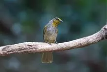 黄绿鹎,小型鸟类,体长19-22厘米。额至头顶暗褐具灰色羽缘,眼先黑色,其上面有一粗著的白纹从鼻后至眼,在黑色的头部极为醒目。上体橄榄绿褐色。颏、喉淡灰色或灰白色,胸灰褐色具橄榄黄色羽缘,…全部>>