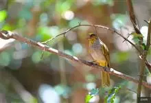 纹喉鹎:体长19厘米,是一种中等体型的偏绿色鹎。特征为头顶、脸颊、颏及喉均具黄色条纹。上体橄榄绿色。胸腹暗灰色,肛周和尾下覆羽艳黄。不可能与任何其他鹎类混淆。虹膜褐色;嘴黑色;脚粉褐色。…全部>>