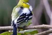 黑翅雀鹎:体重14-19克,体长11.5-16厘米。是树栖性绿色小鸟,外形与叶鹎相似,下体黄色。鸟喙直,翼长而尖,总体羽毛是绿色和黄色相结合,翼上具两道明显近白色横纹,翼近黑而羽缘白。…全部>>