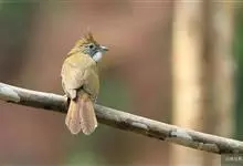 白喉冠鹎:体长20-25厘米。头顶红褐色,有长而细的羽冠、红褐色,头侧灰色。上体橄榄绿黄色,飞羽暗褐色,外翈茶黄色,尾下覆羽皮黄色。…全部>>