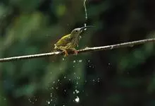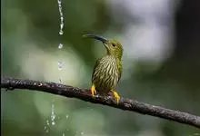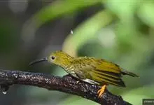 纹背捕蛛鸟:为太阳鸟科捕蛛鸟属的鸟类。是太阳鸟科中体型较大的一种,体重25-45克,体长160-210毫米。嘴粗长而尖且向下弯曲。上体橄榄黄色具黑色中央斑纹。下体淡黄白色满布黑色纵纹,尾具黑色次端斑。…全部>>