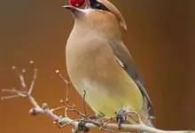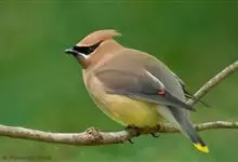 雪松太平鸟体形中等大小,体长约在19厘米左右。该物种雄雌同形同色,太平鸟成鸟额部及面部前端为栗色,向头后部颜色逐渐变浅;额基部、眼先、眼周及眼后部有黑色纹带,颌部亦有黑色区域;枕部黑色,与贯眼的黑色…全部>>