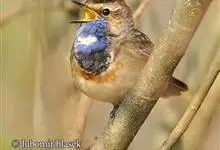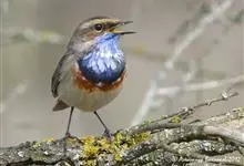 蓝点颏亦称“蓝喉歌鸲”,通称蓝靛颏儿。身体大小和麻雀相似,体长12-13厘米,体重17-18克。头部、上体主要为土褐色。眉纹白色。尾羽黑褐色,基部栗红色。颏部、喉部辉蓝色,下面有黑色横纹。下体白色。…全部>>