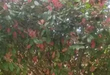 红叶石楠 是蔷薇科,石楠属杂交种,为常绿小乔木或灌木,乔木高可达5米、灌木高可达2米。叶片革质,长圆形至倒卵状、披针形,叶端渐尖,叶基楔形,叶缘有带腺的锯齿,花多而密,复伞房花序,花白色,梨果黄红色,…全部>>