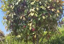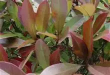 红叶石楠 是蔷薇科,石楠属杂交种,为常绿小乔木或灌木,乔木高可达5米、灌木高可达2米。叶片革质,长圆形至倒卵状、披针形,叶端渐尖,叶基楔形,叶缘有带腺的锯齿,花多而密,复伞房花序,花白色,梨果黄红色,…全部>>