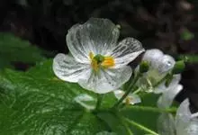 山荷叶属为多年生草本,有匍匐状、粗厚、具节的根茎;根生叶1枚,大,盾状,分裂,生于粗厚的柄上其状如伞,花茎亦具同形,互生的叶2枚,但较小,叶柄盾状着生于近边缘;花白色,为一顶生的聚伞花序;萼片6,…全部>>