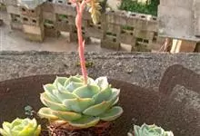 玉蝶 E.Morren)是景天科石莲花属多年生肉质草本植物,植株高可达60厘米。叶片互生,肉质,倒卵匙形,叶稍直立,先端圆且有小尖,微微向内弯曲,叶片淡绿色;单歧聚伞花序腋生,小花为钟形,赭红色,…全部>>