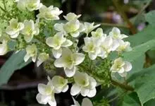 栎叶绣球是绣球科、绣球属落叶丛生灌木,株高可达2米。叶片栎形,深绿色,秋季变为红色或紫色,冬芽有鳞片。托叶缺。聚伞花序排成伞形状、伞房状或圆锥状,顶生;苞片早落;花白色,萼片大,花瓣状,孕性花较小,…全部>>