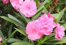 夹竹桃,又名红花夹竹桃、欧洲夹竹桃,是夹竹桃科夹竹桃属的一种常绿直立大灌木,枝条灰绿色,含水液。叶披针形,3叶轮生。聚伞花序顶生,花冠粉红至深红色,花冠漏斗状,有特殊香味。蓇葖果,圆柱形。种子长圆形,…全部>>