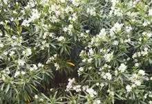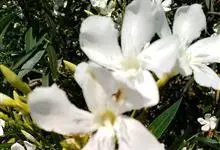 白花夹竹桃是夹竹桃科、夹竹桃属植物夹竹桃的栽培品种。常绿直立大灌木,枝条灰绿色;嫩枝条具稜,被微毛,老时毛脱落。叶3-4枚轮生,下枝为对生,叶面深绿,叶背浅绿色;侧脉纤细平行与中脉成直角;叶柄扁平,…全部>>