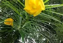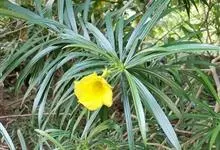 黄花夹竹桃K. Schum.),又名“酒杯花”“柳木子”“黄花状元竹”,是夹竹桃科,黄花夹竹桃属下的常绿乔木植物。高达5m,全株无毛,树皮棕褐色;叶互生,近革质,线形或线状披针形;花大,黄色,具香味,…全部>>