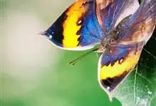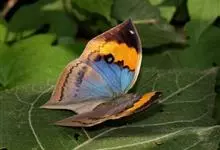 枯叶蛱蝶,又名木叶蝶、树叶蝶等,属于蛱蝶科。翅正面黑褐色,具深蓝色光泽,前翅顶角尖出,顶区有1枚小白点,中部有1条倾斜的橙色斑带,从前缘延伸至Cu室外缘,u室中部有1枚黑色圆斑,…全部>>