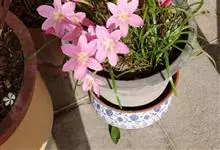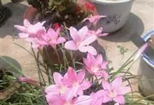 小韭兰学名韭菜莲又名风雨花、菖蒲莲、红玉帘和旱水仙,多年生草本,鳞茎卵球形,基生叶常数枚簇生,线形,扁平,花单生于花茎顶端,下有佛焰苞状总苞,花玫瑰红色或粉红色,蒴果近球形,种子黑色,花期夏秋。韭莲…全部>>