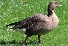 豆雁,雁形目鸭科。成鸟头、颈、背灰褐色,带淡黄色羽缘;尾上覆羽白色,尾羽黑褐色带白端,故飞行伸展时可见尾基和尾端各有一条白色弧线;翼上覆羽灰褐色,初级覆羽深黑灰色带黄白色羽缘,…全部>>