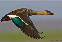 绿翅鸭是小型鸭类,体长37厘米,体重约0.5千克。嘴脚均为黑色。雄鸟头至颈部深栗色,头顶两侧从眼开始有一条宽阔的绿色带斑一直延伸至颈侧,尾下覆羽黑色,两侧各有一黄色三角形斑,在水中游泳时,极为醒目。…全部>>