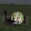 绿头鸭属游禽,大型鸭类。体长47-62厘米,体重大约1千克,外形大小和家鸭相似。雄鸟嘴黄绿色,脚橙黄色,头和颈辉绿色,颈部有一明显的白色领环。上体黑褐色,腰和尾上覆羽黑色,两对中央尾羽亦为黑色,且向…全部>>