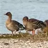 豆雁,雁形目鸭科。成鸟头、颈、背灰褐色,带淡黄色羽缘;尾上覆羽白色,尾羽黑褐色带白端,故飞行伸展时可见尾基和尾端各有一条白色弧线;翼上覆羽灰褐色,初级覆羽深黑灰色带黄白色羽缘,…全部>>