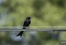 黑卷尾是雀形目卷尾科一属,又称铁练甲、铁燕子、铁林哥、羊蹄刺、榨油郎,体长约30厘米全身蓝黑色而具金属光泽,尾长且分叉较深。幼鸟似成鸟,金属光泽弱,下腹部具近白色的横纹。虹膜暗红色,嘴黑色,脚黑色。…全部>>