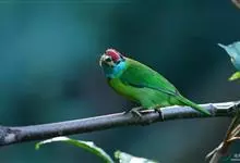 蓝喉拟啄木鸟,是须鴷科、拟啄木鸟属的鸟类。蓝喉拟啄木鸟为小型鸟类,体长20-23厘米。前额至头顶鲜红色,其上有一宽阔的黑色横带,将此红色分为前后二块;头侧、颏、喉蓝色,下喉两侧各具一红色点斑。…全部>>