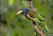 金喉拟啄木鸟,是须鴷科、拟啄木鸟属的鸟类。金喉拟啄木鸟为小型鸟类,体长19-24厘米。额深红色,头顶金黄色,后枕具一大块深红色斑,耳羽和头侧银灰色,上体草绿色,颏和上喉金黄色,下喉淡银灰色,…全部>>