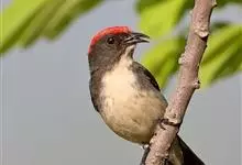 朱背啄花鸟:体重6-8克,体长81-97毫米。是一种小型的黑色及红色啄花鸟。雄鸟顶冠、背及腰猩红色,两翼、头侧及尾黑,两胁灰,下体余部白色。雌鸟上体橄榄色,腰及尾上覆羽猩红,尾黑。亚成鸟清灰色,嘴橘黄,…全部>>
