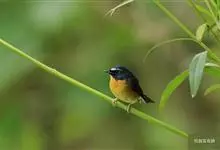 黄腹啄花鸟:体重11-16克,体长104-117毫米。是一种体型大,下腹部为艳黄色的啄花鸟,雄鸟特征为头黑色,喉部有白色纵斑、喉侧及上体成对比,两翅和尾黑色,外侧尾羽内翈具白色斑块。其余下体淡黄色。…全部>>