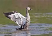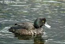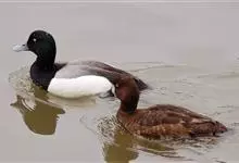 斑背潜鸭体长42-47厘米,翼展68-75厘米,体重750-1350克,是中等的体矮型鸭。雄鸟体比凤头潜鸭长,背灰,无羽冠。雌鸟与雌凤头潜鸭区别在于嘴基有一宽白色环。…全部>>