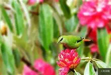 火尾绿鹛是莺科、绿鹛属小型鸟类,体长11-14厘米。上体绿色,头顶至枕具黑色鳞状斑,眼先和眼后黑色,眉纹黄绿色。两翅黑色具黄色和红色翅斑及白色端斑,极为醒目。中央一对尾羽绿色,外侧尾羽鲜红色。…全部>>