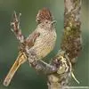 条纹噪鹛是画眉科、噪鹛属中型鸟类,体长28-32厘米。头具短的羽冠,上体栗褐色,飞羽外翻蓝灰色。下体棕栗色,腹以后转为褐白色。除飞羽和尾羽外,所有上、下体羽均具白色羽干纹。极为醒目。野外特征明显,…全部>>