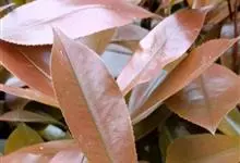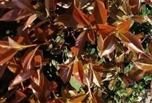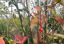 红叶石楠 是蔷薇科,石楠属杂交种,为常绿小乔木或灌木,乔木高可达5米、灌木高可达2米。叶片革质,长圆形至倒卵状、披针形,叶端渐尖,叶基楔形,叶缘有带腺的锯齿,花多而密,复伞房花序,花白色,梨果黄红色,…全部>>