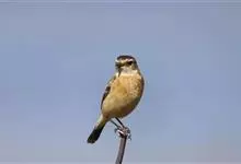 黑喉石鵖,雀形目鹟科石鵖属小型鸣禽,俗名谷尾鸟、黑喉石。其体色为黑褐色。雄鸟头部、背部、两翼及尾黑色,颈侧及翼上具白斑,胸部和腹侧红棕色,腰及尾下覆羽白色。雌鸟体色为褐色,上体具深色纵纹,胸部染棕色,…全部>>