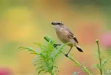 漠䳭是鹟科、䳭属小型鸟类,体长14-17厘米。雄鸟上体沙棕色,腰和尾上覆羽白色,两翅和尾黑色,尾基部白色,眼纹白色,眉纹以下整个脸和头侧以及颏、喉黑色,其余下体白色。雌鸟和雄鸟大致相似,但颏、喉白色,…全部>>