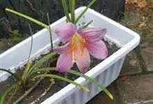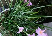 小韭兰学名韭菜莲又名风雨花、菖蒲莲、红玉帘和旱水仙,多年生草本,鳞茎卵球形,基生叶常数枚簇生,线形,扁平,花单生于花茎顶端,下有佛焰苞状总苞,花玫瑰红色或粉红色,蒴果近球形,种子黑色,花期夏秋。韭莲…全部>>