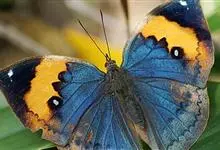 枯叶蛱蝶,又名木叶蝶、树叶蝶等,属于蛱蝶科。翅正面黑褐色,具深蓝色光泽,前翅顶角尖出,顶区有1枚小白点,中部有1条倾斜的橙色斑带,从前缘延伸至Cu室外缘,u室中部有1枚黑色圆斑,…全部>>