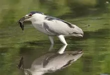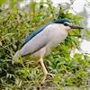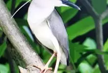 夜鹭是中型涉禽,体长46-60厘米。体较粗胖,颈较短;嘴尖细,微向下曲,黑色;胫裸出部分较少,脚和趾黄色;头顶至背黑绿色而具金属光泽;上体余部灰色;下体白色;枕部披有2-3枚长带状白色饰羽,下垂至背上,…全部>>