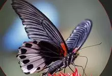 美凤蝶又名多型蓝凤蝶、大凤蝶,是鳞目凤蝶科凤蝶属动物。美凤蝶雄蝶无尾突,翅黑色,正面各翅室中部有深色条纹,分布蓝色鳞片,反面前后翅基部有红斑,后翅臀角有环状红斑。雌蝶具多型,前翅浅灰色,外缘和翅脉黑色,…全部>>