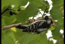 绒啄木鸟,北美洲最小的啄木鸟,白腹黑背和黑项,黑翼上有白色斑点。头部有黑白相间的条纹,尾巴短小,雄鸟的头部有红色羽毛。绒啄木鸟原是阿拉斯加的居民,现分布加拿大和南部遍及美国的西南。 首选的栖所包括森…全部>>