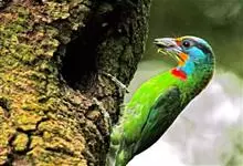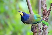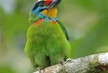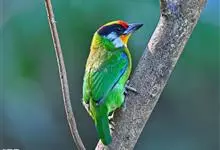 金喉拟啄木鸟,是须鴷科、拟啄木鸟属的鸟类。金喉拟啄木鸟为小型鸟类,体长19-24厘米。额深红色,头顶金黄色,后枕具一大块深红色斑,耳羽和头侧银灰色,上体草绿色,颏和上喉金黄色,下喉淡银灰色,…全部>>