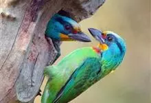 蓝喉拟啄木鸟,是须鴷科、拟啄木鸟属的鸟类。蓝喉拟啄木鸟为小型鸟类,体长20-23厘米。前额至头顶鲜红色,其上有一宽阔的黑色横带,将此红色分为前后二块;头侧、颏、喉蓝色,下喉两侧各具一红色点斑。…全部>>